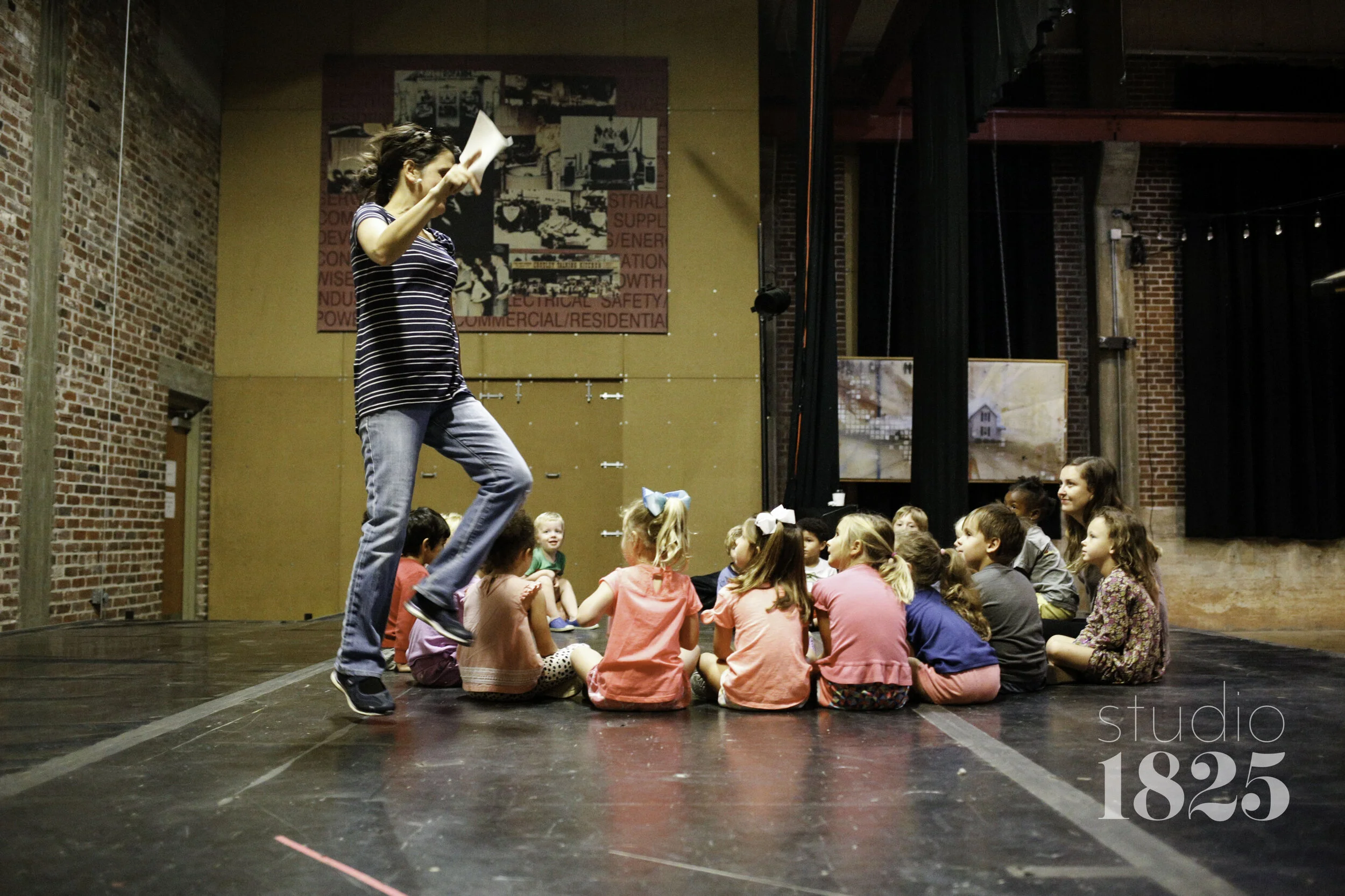 Andi reading a book that goes along with an art project at Spring Break Art Camp 2020